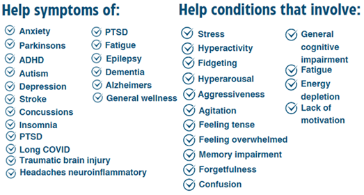 It is painless, drug-free, and supported by an increasing body of clinical research, particularly in the areas of depression, anxiety, PTSD, TBI, and cognitive decline.
